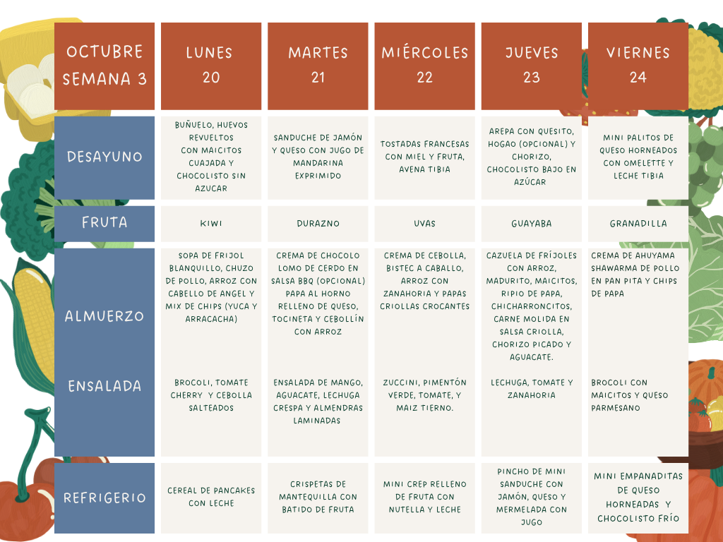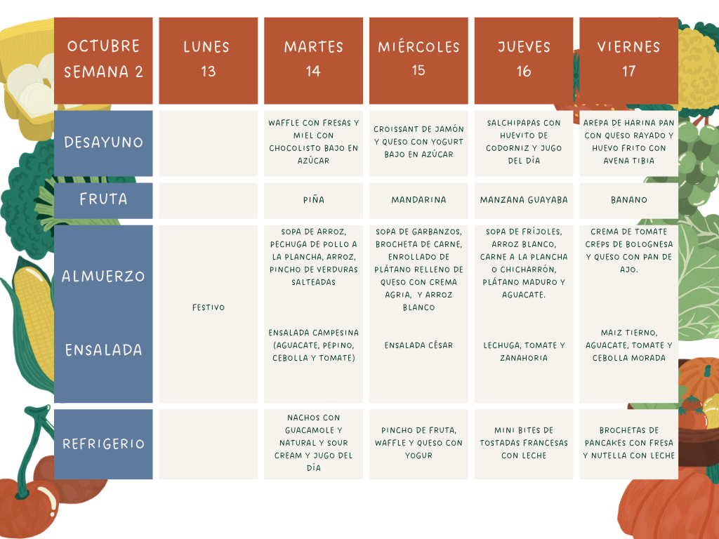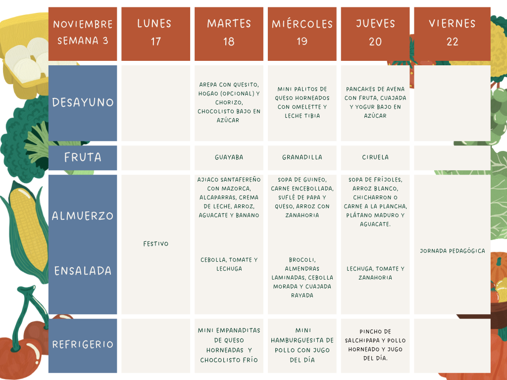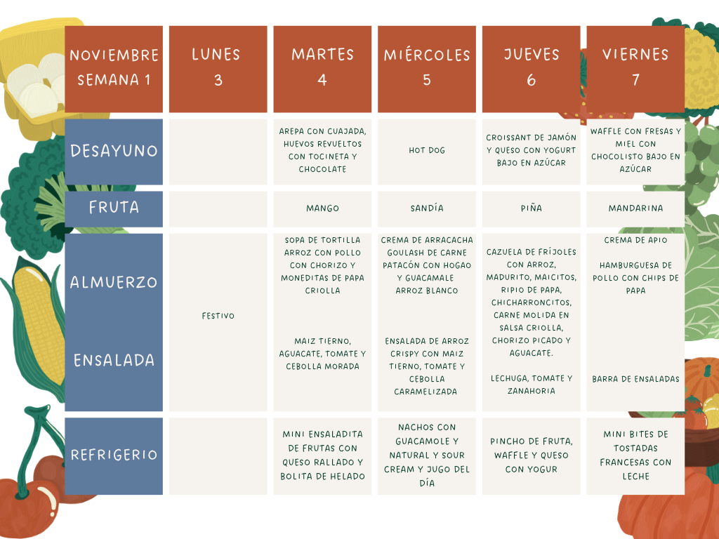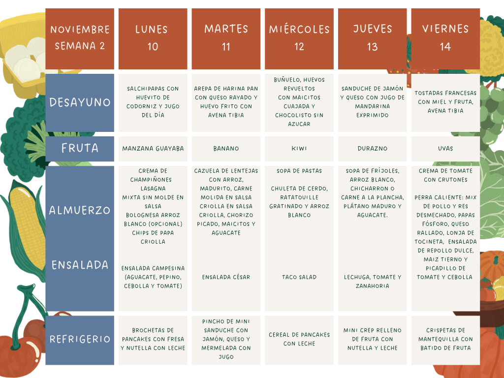 - Plan Completo: Puedes incluir desayuno, media mañana, almuerzo y refrigerio, todo incluido en un solo pago mensual – Recomendado para estudiantes de preescolar.